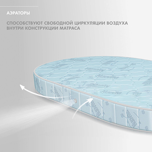 В матрасе Nuovita Сalore по периметру присутствуют два аэратора (вентиляционные воздушные отверстия), они способствуют свободной циркуляции воздуха внутри конструкции  матраса для обеспечения комфортного сна и долговечности изделия.