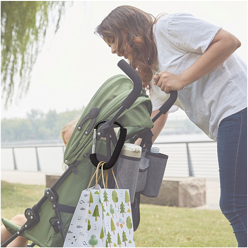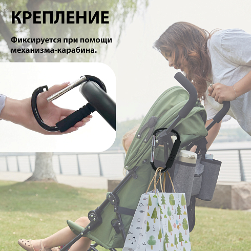 Карабин для коляски Fattivo - аксессуар, который подходит к любой коляске и легко крепится на ручке при помощи механизма- карабина. Изделие выполнено из прочных и качественных материалов: металла и пластика. Прорезиненная ручка предотвращается скольжение карабина на ручке.