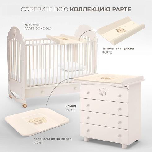Покупатели могут выбрать матрасик-накладку белого или бежевого цвета. Изделия украшены рисунком, который соответствует одной из коллекций детской мебели Nuovita. Любой из очаровательных принтов, которые являются фирменным знаком бренда, понравится малышу и поможет создать в детской радостное настроение.