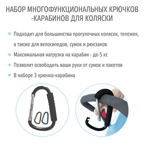 Набор многофункциональных крючков-карабинов для коляски Fattivo multi