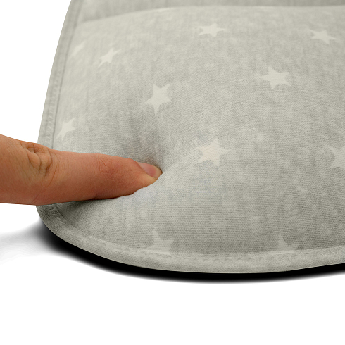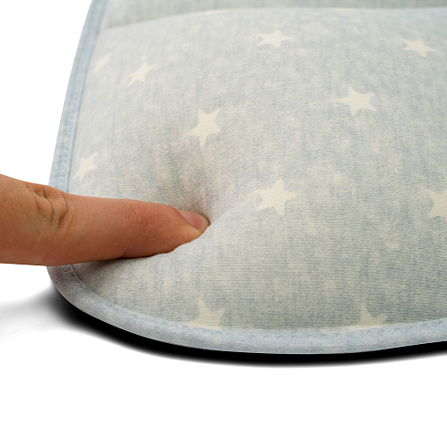 Наполнитель подушки — это уникальная пена с дышащей микропористой текстурой, эластичная и упругая. Она сертифицирована для применения в детских изделиях и обладает устойчивостью к пылевым клещам. Мягкий дышащий чехол сшит из 100% натурального хлопка.